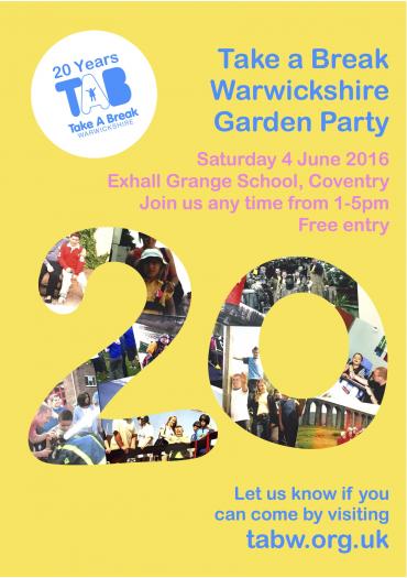 This June, Take a Break Warwickshire will turn 20 years old. TAB started in 1996 as a project with only two years of funding, but has grown into a charity that supports over 500 families across the region.